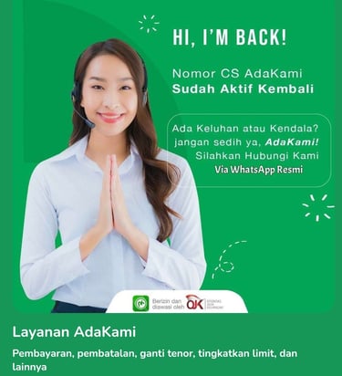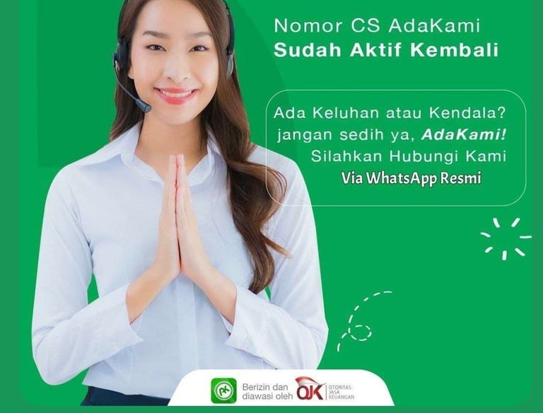 AdaKami, solusi dapatkan pinjaman dana tunai online dengan proses yang mudah dan cepat. Dapatkan akses pinjaman uang online tanpa jaminan, tanpa ribet, bisa langsung cair secara instan dalam waktu 1 hari kapan pun dan dimanapun melalui aplikasi AdaKami. AdaKami secara resmi telah berizin dan diawasi OJK.